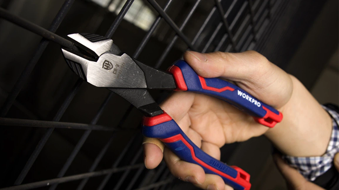 Also known as side cutters, diagonal cutting pliers are one of the most essential and frequently used tools in electrical and electronics work. Characterized by their angled, intersecting jaws, these pliers cut using a shearing action rather than crushing, allowing them to make clean cuts through a variety of materials. They are particularly well-suited for cutting copper, aluminum, and steel wires, and are also commonly used to trim cable ties, snip component leads, and clip small fasteners or pins.
